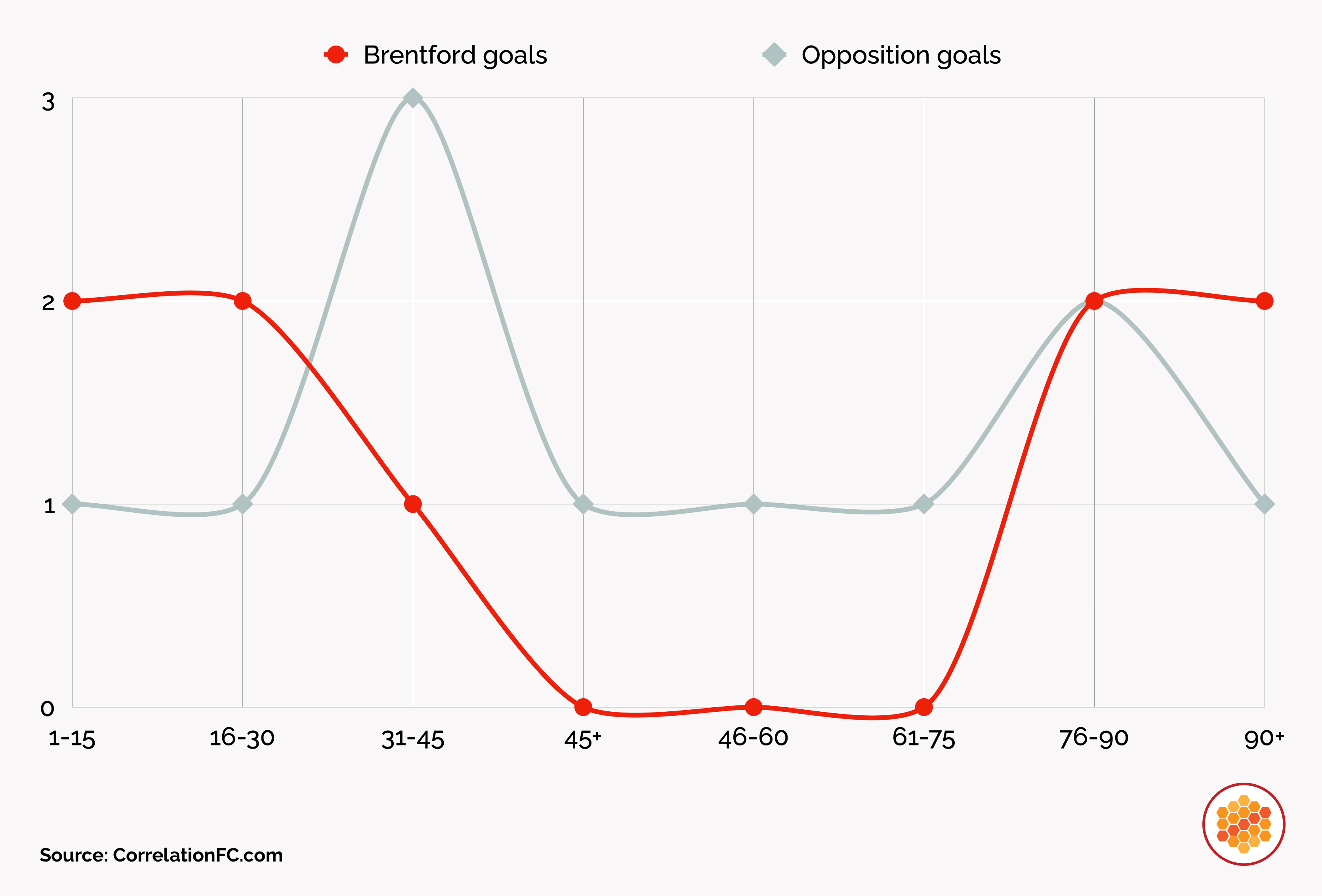 Brentford's goal scoring scenarios (all competitions) (Source: Correlation FC)